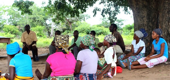 Coguno is big and stunningly beautiful. It takes over two hours to walk from some of the outlying hamlets to the center, where there is a vibrant market. It is home to around 1,660 multi-generational families who live in small settlements of woven palm or mud houses. They have already started the process of protecting their land by mapping and marking the boundaries of the communal land. A land and natural resources committee has also been elected and it is they who are waiting for us, under the meeting tree just past Coguno’s rather lovely, pink-stuccoed primary school. The chairs are reserved for us and the Regulo, the local traditional leader. The women, in their colorful capulana skirts are sitting on the ground with some of the men. But I’m told not to read too much into the custom of women giving up their seats to men. Their presence on the land committee is a sign of the importance of land rights to the empowerment of women.