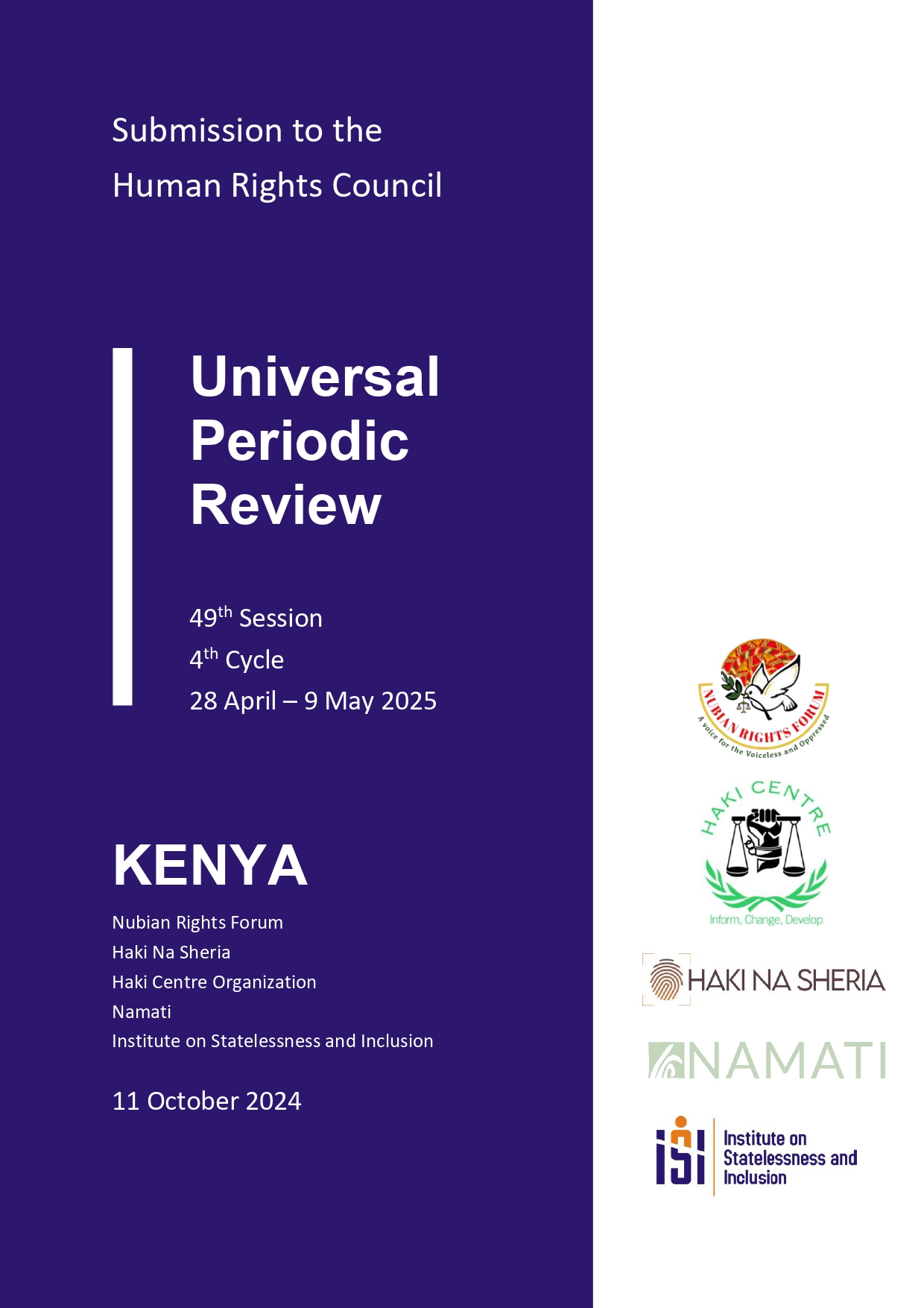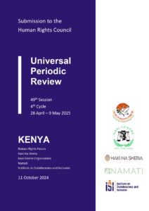 Nubian Rights Forum, Haki Centre Organization, Haki na Sheria, Namati and the Institute on Statelessness and Inclusion make this joint submission to the Universal Periodic Review (UPR), on the right to a nationality and human rights challenges pertaining to statelessness in Kenya.